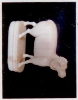| Description / विवरण | This are object is carved as a Ram. It is placed on an oblong shaped platform. The platform is decorated with vertical incised line. The Ram has two horns Minutely carved . It is in a walking posture. |