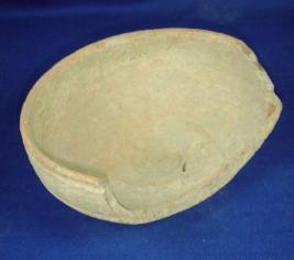 | Description / विवरण | Coarse, well fired terracotta bowl with footed circular, flat base, round body. The upper part of the body is carinated and close striation marks are visible in the interior surface. Almost half part of the bowl is broken. |