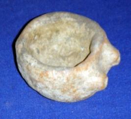 | Description / विवरण | Coarse terracotta vessel- spouted vessel with flat base, circular body and featureless rim. It is crudely finished and perforation on one side. It was probably used as oil container. |
