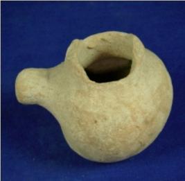 | Description / विवरण | Handmade, terracotta spouted bowl where the spout is broken but a perforated hole is visible, inverted broken rim, with rough surface, the body is round shape with the hole in the centre. |