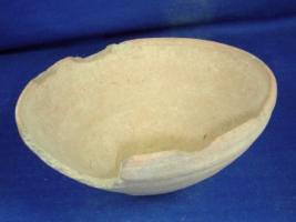 | Description / विवरण | Coarse terracotta bowl with footed round base, flaring side having vertical rim, mild corrugated marks on outer surface, it has slight broken rim. |