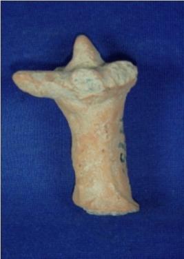 | Description / विवरण | Terracotta object in the shape of a flower, crudely finished. The upper part has a bloomed flower, with a thick stalk below it. Only one petal is impact. In the centre is an upraised bud. Portion of the base is broken. It was probably used for religious purpose. |