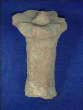 | Description / विवरण | Terracotta object in the shape of a flower, crudely finished. The upper part is like a bloomed flower with a thick stalk below it. There is an upraised bud and broken petals of the flower. Portion of stem is broken. It was probably used for religious purpose. |