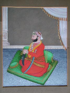 | Description / विवरण | This painting represent Maharaja Harbakshapal of Karauli in posture shown almost from lateral view. He is wearing a red coloured tunic, a crown, few chain of beads, finger rings |