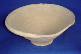 | Description / विवरण | Terracotta bowl with flat circular base, flayed sides and vertical rim. There is corrugation on the interior and exterior surface of the bowl. Clay incrustation on the bowl. |