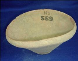 | Description / विवरण | Coarse terracotta bowl with slightly inverted rim. Flayed body and flat, circular footed base. On the both inner and outer side, some striation marks are seen. Most probably it was very crudely made and probably not finished. |