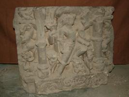 | Description / विवरण | It is an image of Varaha whose face and left hand is broken. It has four hands. Bhu Devi is missing. Below him water is shown. Both sides are carved with human figures unidentified . |