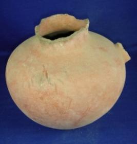 | Description / विवरण | Red slipped, ill fired, terracotta Miniature pot, with circular flat base, bulbous body with a broken spout, broad mouth, high neck whose upper part is broken. |