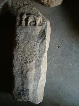| Description / विवरण | It is a memorial stone dated 1176 A.D. On the upper part two animal figures have been carved and on the middle portion 14 lines in Devanagri scripts have been inscribed. Lower portion of it is slightly upward than upper portion. |