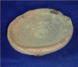 | Description / विवरण | Small plain terracotta vessel - bowl with short cylindrical stand. It is very shallow with thick rim, which is slightly broken. |