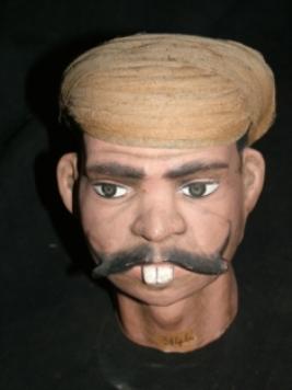 | Description / विवरण | Head gear or turban tied on the head made of paper mache , of a Terahpanthi Saraogi, a Jain who does not worship images. It is in yellow color. |