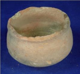 | Description / विवरण | Plain terracotta vessel-bowl, with a broad mouth and round body and high depth. The bottom of the rim has an incised line around it. The rim is slightly broken. |
