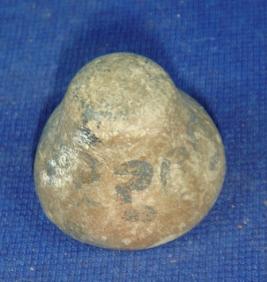 | Description / विवरण | Terracotta Dabber on flat circular shape, tapering upwards and forming a round knob. |