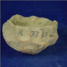 | Description / विवरण | Small terracotta vessel, probably bowl, with perforated hole in the centre. It is handmade, with very crude finishing. |