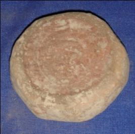 | Description / विवरण | Terracotta disc, circular having rough surfaces, with one side flat and other having shallow depression. |