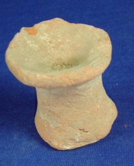 | Description / विवरण | Terracotta stand having flat circular base, cylindrical body, deep circular stand portion with broken edges. |