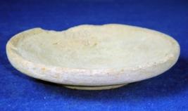 | Description / विवरण | Shallow, coarse, ill fired, terracotta plate with flat, circular base, flayered body, the rim of which is partially flaked off. Close striation marks are prominent on the body. |