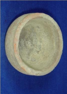 | Description / विवरण | Coarse terracotta vessel - bowl having shallow depth, featureless rim, bulbous body and round base. |