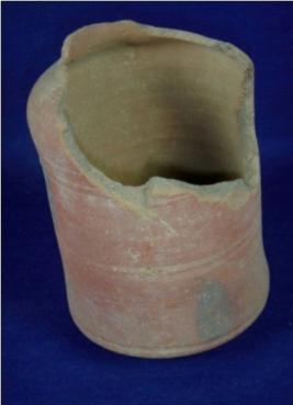 | Description / विवरण | Long cylindrical terracotta vessel - jar, smooth from outside and contains sparse and close striation marks. The base is slightly oval and body is round. It was probably used for the storage of grains. |