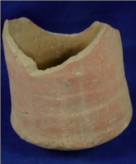 | Description / विवरण | Terracotta jar, cylindrical in shape, with oval base. The neck and rim is broken. Only the lower part of the body and base is visible. It has smooth surface. |
