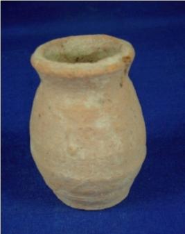 | Description / विवरण | Terracotta Miniature Pot having broad neck and thick averted rim, there is a hole in the neck. Some wheel marks are seen and has flat circular base. |