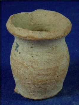 | Description / विवरण | Terracotta Miniature Pot of round cylindrical shape with flat round base, narrow neck, broad mouth and thick averted rim. |