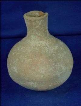 | Description / विवरण | Terracotta surahi of round shape with elongated neck and rim. A rim design below the neck portion. Slight portion of rim is broken. |