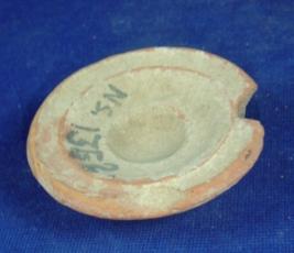 | Description / विवरण | Coarse, terracotta lid with inverted rim, having flayed body with double carination and depression on upper surface and flat circular base which is partly broken. Earthly incrustation is partially present on the body. |