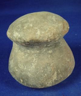 | Description / विवरण | Terracotta potter s mallet, having double bridged body, used by the potters for tapping the surface of the pot or jar on their removal from the wheel. The lower portion, called dabber is broader than the upper portion. The dabber is slightly oval in shape. |