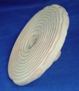 | Description / विवरण | Ill fired potter s stamp with a knob having carination forming concentric circles at base. Striation mark can be seen on upper surface. |