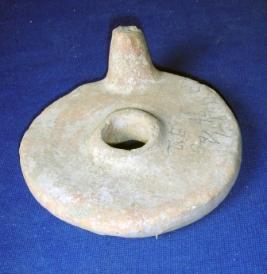 | Description / विवरण | Ill fired, terracotta mile stone, circular and flat in shape with a perforation at the centre. A small projection is seen at one side. Its surface is smooth. |