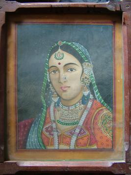 | Description / विवरण | It is a painting of lady bust . She is in good dress and richly ornamented. She has a veil on his head. She seems to belong in rich family and married. It is mounted in a frame |
