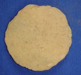 | Description / विवरण | Plain, terracotta disc, circular in shape, with smooth surface sides are broken. |
