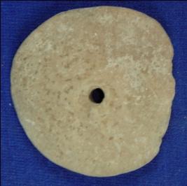 | Description / विवरण | Ill-fired plain terracotta wheel, having flat surface and broken edge. |