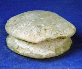 | Description / विवरण | Terracotta Ear ornament , ill fired, biconvex in shape with deep concavity at the centre, surface are broken. |