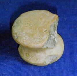 | Description / विवरण | Terracotta Ear ornament with concave body and flat circular base, part of the top of the disc is broken. |