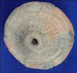 | Description / विवरण | Terracotta wheel with perforated hole and center portion is raised out wards and having incised line design on one surface. |