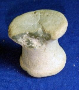 | Description / विवरण | Terracotta Dabber with concave body, having flat circular base and top, whose a portion of the base is broken. |