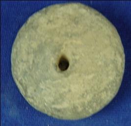 | Description / विवरण | Terracotta wheel, bi-convex in shape having perforated hole and edges are broken. |