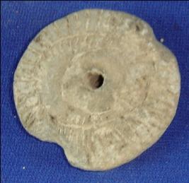 | Description / विवरण | Terracotta wheel, biconvex in shape, edges are partly broken. |