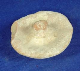 | Description / विवरण | Ill fired terracotta lid circular rim with cylindrical round knob and circular base. Edges are broken and clay incrustation on it. |