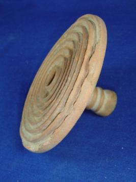 | Description / विवरण | Terracotta knob lid, with circular incised lines on the upper part of the lid. and lower part with carinated, concentric circles, with a deep hole, probably made for decorative purpose. |