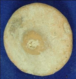 | Description / विवरण | Terracotta wheel, perforated in the center, most probably to fix it to the axle of the toy cart, center is raised outward, clay incrustation over some parts. |