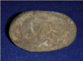 | Description / विवरण | Terracotta seal with flat circular base. The centre is broken, ten letters of Brahmi script is inscribed on it. |