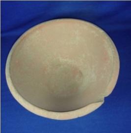 | Description / विवरण | Semi fine terracotta bowl with thick in turned rim, where a part is broken, round body flat circular base, some striation marks are seen in one body. |