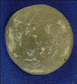 | Description / विवरण | Ill fired, terracotta wheel, biconvex in shape hand made incised hole at the center, clay incrustation all over. |
