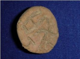 | Description / विवरण | Terracotta seal, betel nut shape, having incised Brahmi script at the bottom. |