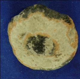 | Description / विवरण | Hand-made, ill fired terracotta wheel having no perforation biconvex is shape, rim is slightly broken. |