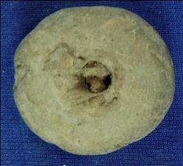 | Description / विवरण | Perforated hand made terracotta wheel, bi-convex in shape, rim is slightly broken probably used in toy cart. |