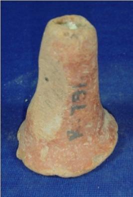 | Description / विवरण | Coarse terracotta vessel - broken spout of any bowl having hole through its centre. It is having gupta red polish on its surface. |